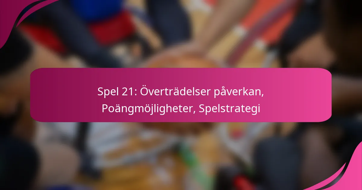 Regelbrott i spel 21, såsom traveling och double dribbling, kan påverka spelets momentum och strategi avsevärt. Att förstå dessa konsekvenser hjälper spelare och tränare att justera sina taktiker och upprätthålla disciplin på planen.